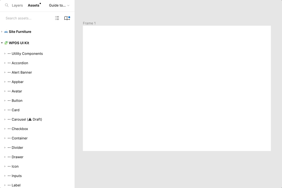 Like all of the components in our UI Kit Library, the Carousel component can be placed into your Figma file by dragging an instance of it from the “Assets” panel into your document.